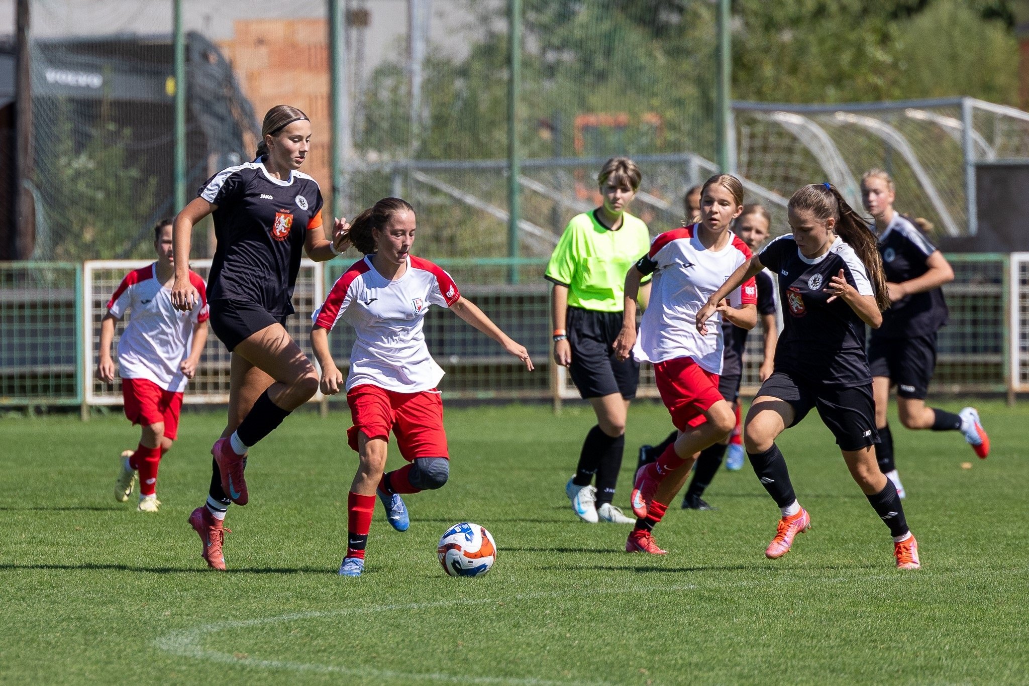 Do zápasu jsme vstoupili aktivně, ale po pěti minutách naše hráčky ustoupily ze své hry a přenechaly iniciativu domácím hráčkám. Přes naši pasivní hru jsme se paradoxně dostali do zajímavých střeleckých příležitostí, avšak bez úspěchu. Bohužel ve 27. minutě po centru z pravé strany jsme neuplatnily důraz v pokutovém území, tak jako po dobu celého utkání, a soupeřky se nadvakrát ujaly vedení. Ke konci poločasu holky zvýšily úsilí a vytvořily si tři velké příležitosti, bohužel nás zradila přesnost, um brankářky Hradce a v jednom případě smůla v podobě nastřelené tyče.