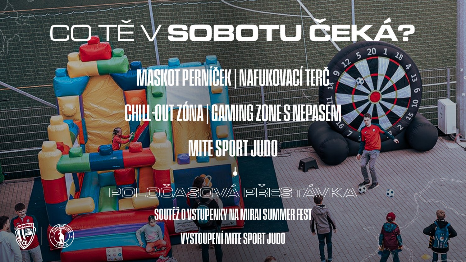 Novinkou ve fanzóně bude stanoviště Mite sport Pardubice - klub bojových umění, kde si budete moci vyzkoušet karate. V rámci předzápasového programu budeme vystřelovat mezi diváky trička FKPCE, do některých z nich schováme také vstupenky na MIRAI Summer Fest.